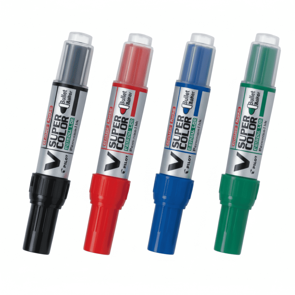 The SCA-VSC-M-S4 Pilot V Super Permanent Marker delivers bold, long-lasting ink performance with a round bullet tip, making it ideal for clear writing and permanent marking on various surfaces.